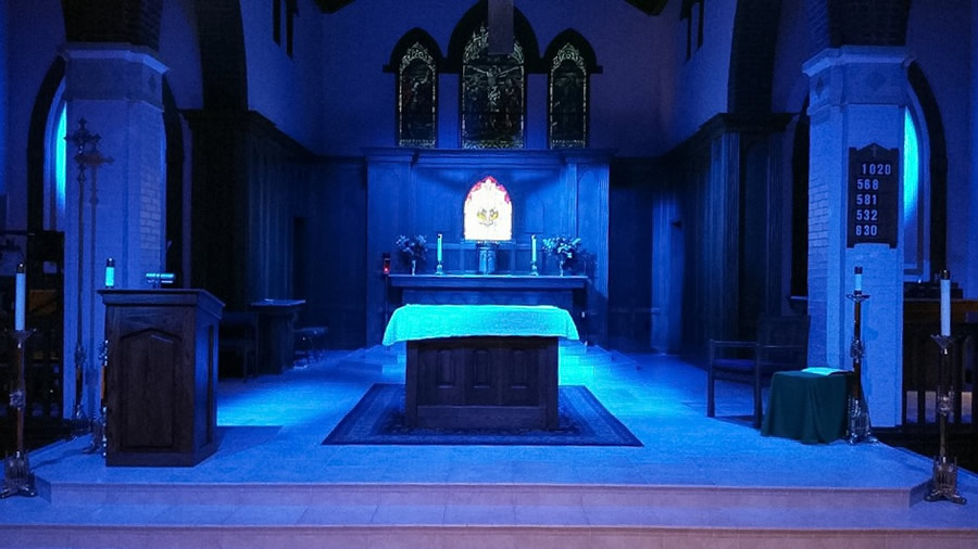 Here is an example of an architectural lighting job at a church. The job called for spotlighting and complete control with unlimited color and brightness level. DCA Group did it all from the initial consultation and design complete installation of the various lighting products as well as the electrical service requirements. We finished the job with onsite training on how to use the control panel to vary color and level control.